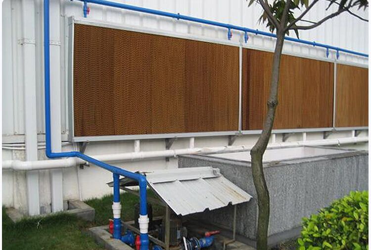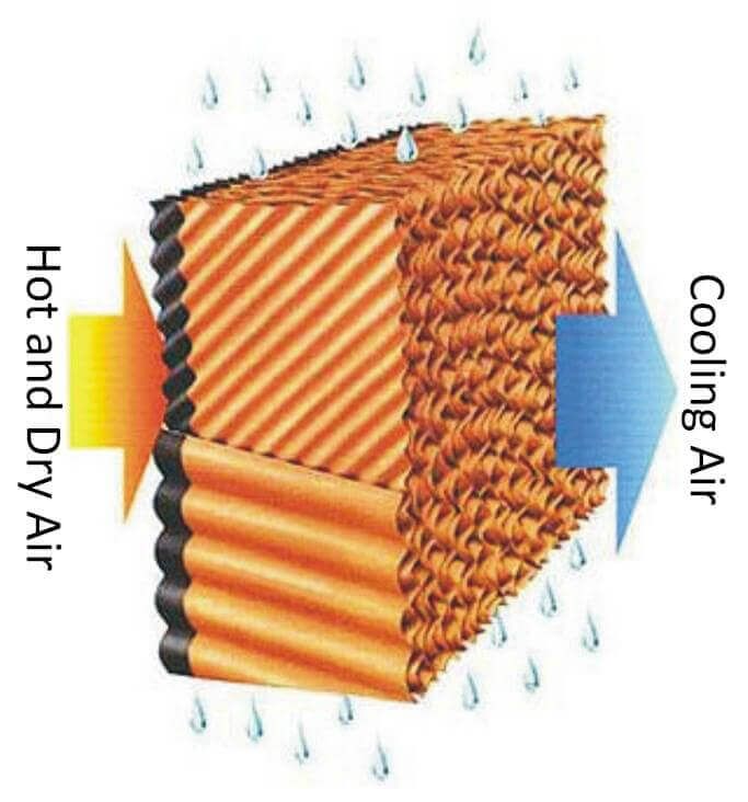 - 冷却垫与排气扇一起使用。该系统通过冷却焊盘绘制进入的空气,该冷却垫位于通风系统的入口处。