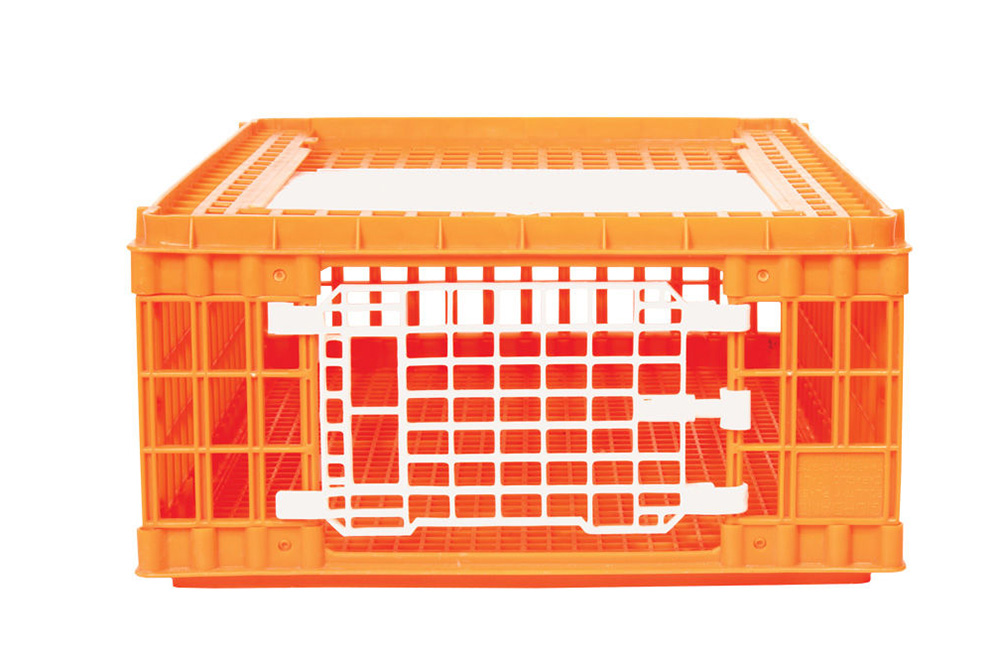 - 板条箱上的小孔和光滑的底部可避免夹紧和可能的家禽伤害。空气流通良好。